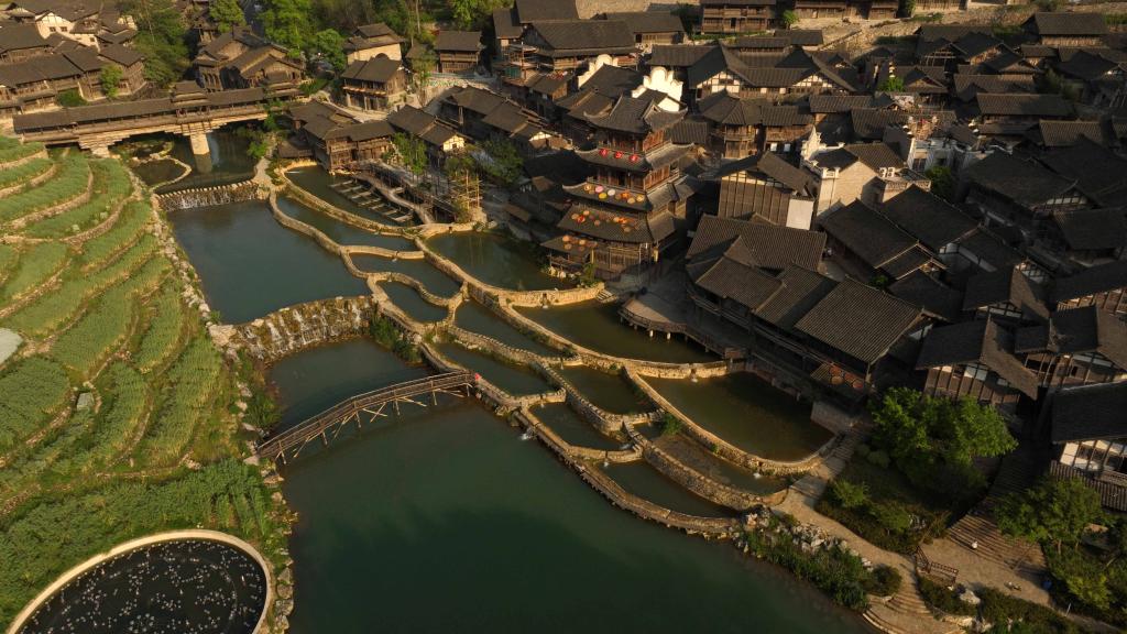 4月11日拍摄的贵州省遵义市播州区乌江寨景区一角(无人机照片)。新华社记者杨楹摄
