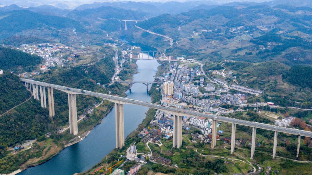 贵州省乌江特大桥(2021年11月24日摄,无人机照片)。新华社记者欧东衢摄