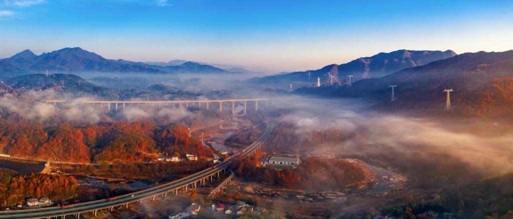 2021年11月20日,在金寨县斑竹园镇桥口远眺大别山。新华社发(汪诚 摄)