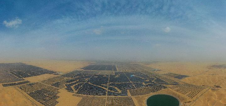 内蒙古达拉特光伏发电应用领跑基地的“骏马电站”。新华社记者刘磊 摄