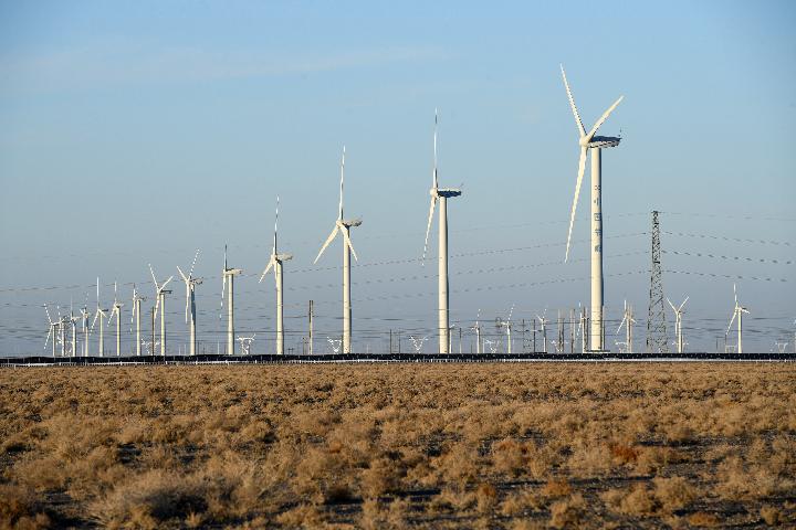 中节能(甘肃)风力发电有限公司玉门昌马风电场的风机。新华社记者范培珅 摄
