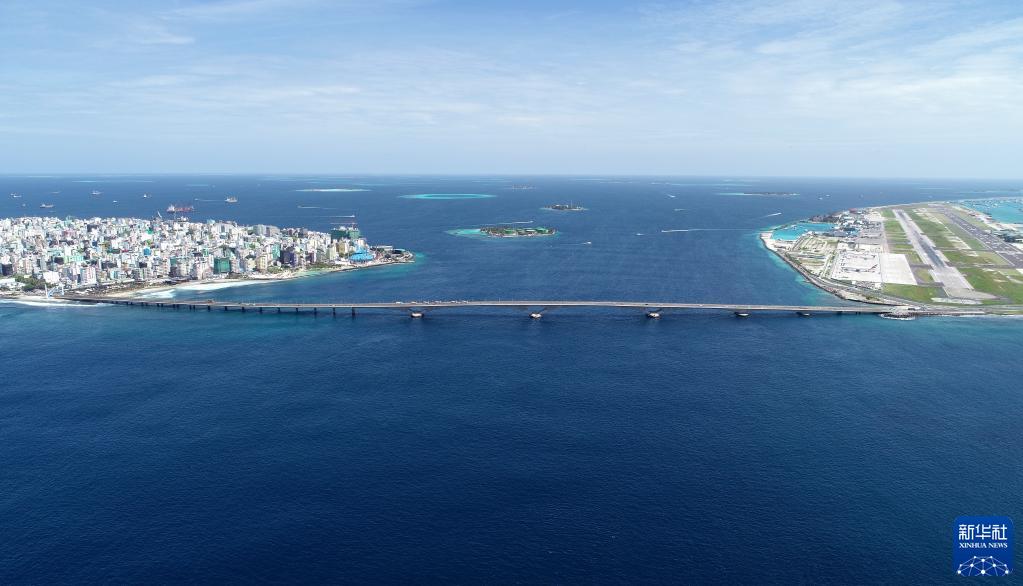 这是马尔代夫连接首都马累和机场岛的中马友谊大桥(2019年8月30日摄,无人机照片)。新华社发(王明亮摄)
