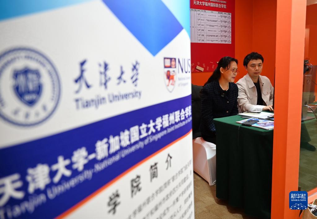 1月31日,天津大学福州国际联合学院老师在2023年“好年华 聚福州”春季高校毕业生大型招聘会现场视频面试专区向应聘者介绍该校情况。新华社记者 林善传 摄
