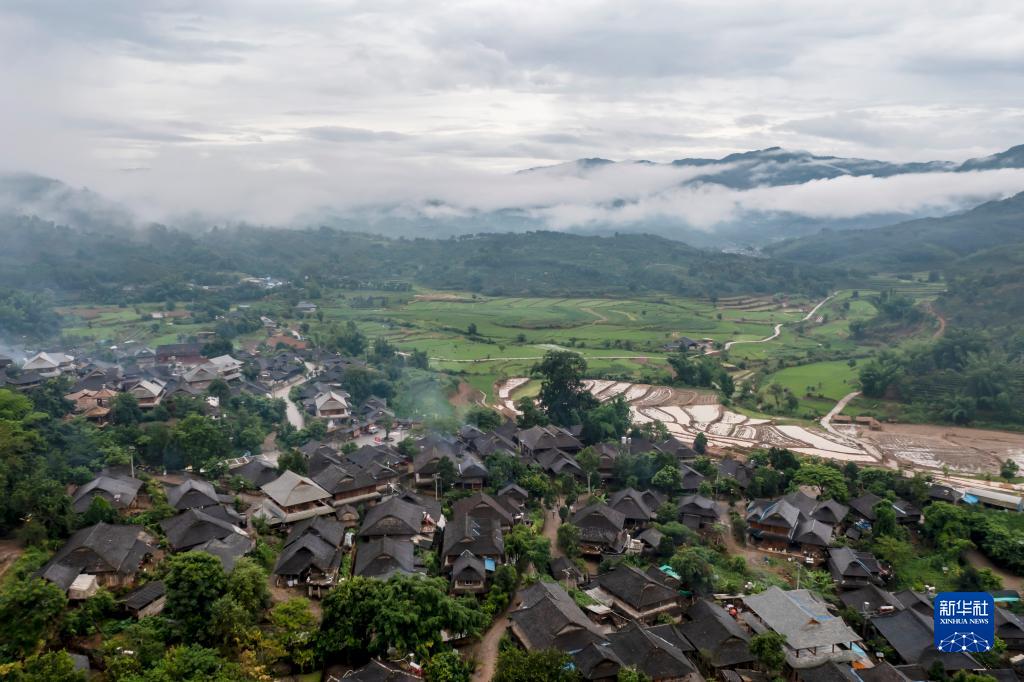 云南省普洱市澜沧拉祜族自治县老达保村夏日景色(2022年7月5日摄,无人机照片)。新华社记者 江文耀 摄