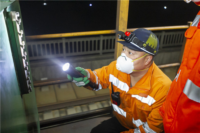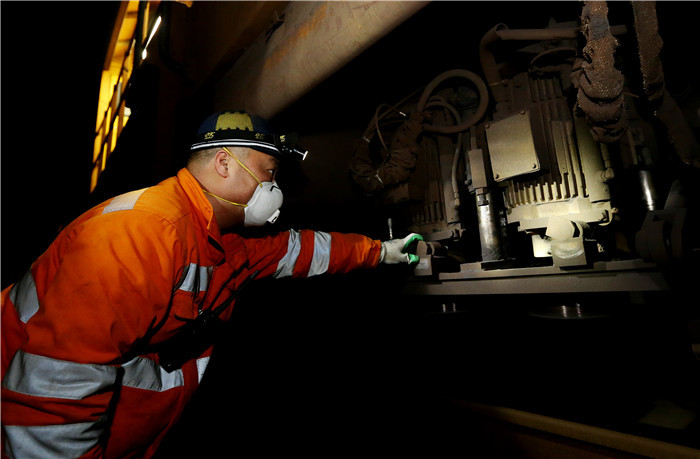↑1月9日,完成打磨作业后,铁路员工检查车身打磨元件的情况。新华社记者 方喆 摄