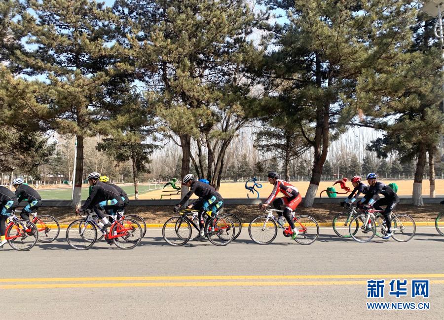 2月24日,青海省体育运动学校自行车队队员在多巴基地训练。新华社记者 李琳海 摄