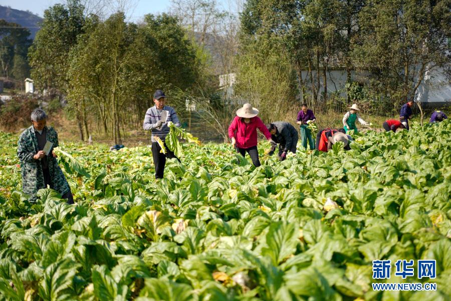 2月20日,在重庆市涪陵区江北街道,村民在田间收砍青菜头。