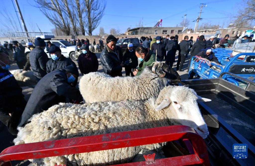 1月17日,村民在宁夏银川市贺兰县金贵集市上选购活羊。新华社发(李靖 摄)