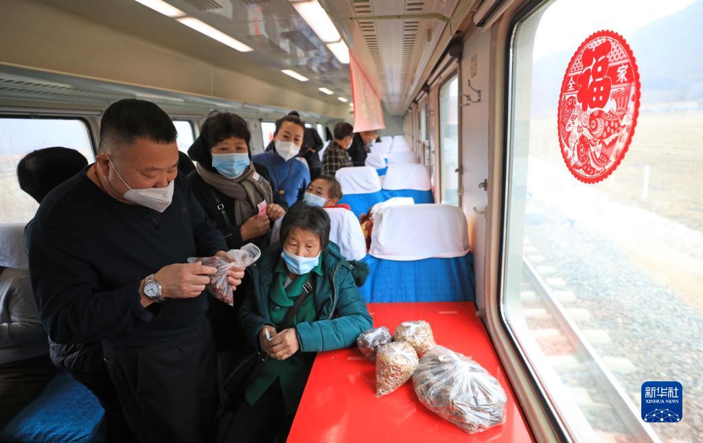 伴随着列车员的广播,相邻车厢不少乘客过来赶起大集。列车长金明朔介绍说,这趟列车沿途经过的大多是山区,周边百姓生产的农产品很难走出大山,从2019年开始,铁路部门以“慢火车”为载体,把“大集”搬进车厢。渐渐地,这辆低票价的慢火车成为乡亲们致富增收的“移动市场”。