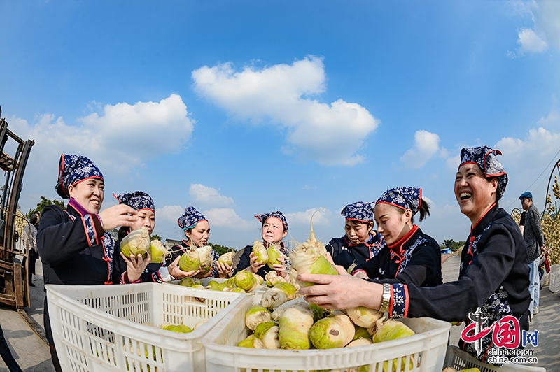 村民展示丰收的大头菜(摄影 廖志全)食品产业与文旅的融合发展